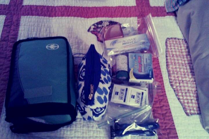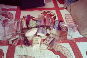 Jessica’s toiletriesJessica’s toiletries, all packed up nicely for compact placement in the suitcase.
