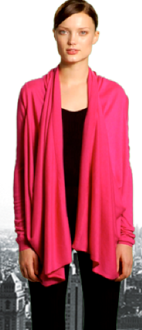 I ordered a less expensive version from Amazon, and I like it.  I’m not exactly the size of this model so I can’t do a lot of the wraparound styles, but I have so far been successful with the cardigan, cowl neck, and a front-tie.  I will get some photos up soon — I was unable to get some in time for this post!