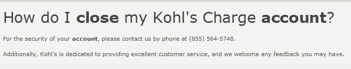 kohlsVery helpful! I called.  There was an automated message thing again, and I had to go through two menus, but they did offer an option for closing the account.  I pressed two and was connected to a very helpful representative who took care of it without a problem.  He did ask why I was closing it, and I said I was closing all of my accounts.  He let me know that I could reapply at a later date if I wanted to open a new line of credit.
