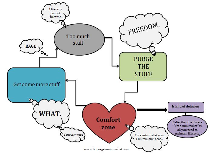 This made me lose my breath. I am STILL after a YEAR in the initial getting rid of stuff phase. You mean I’ll have to do this all over again in a year or two? WAH!!